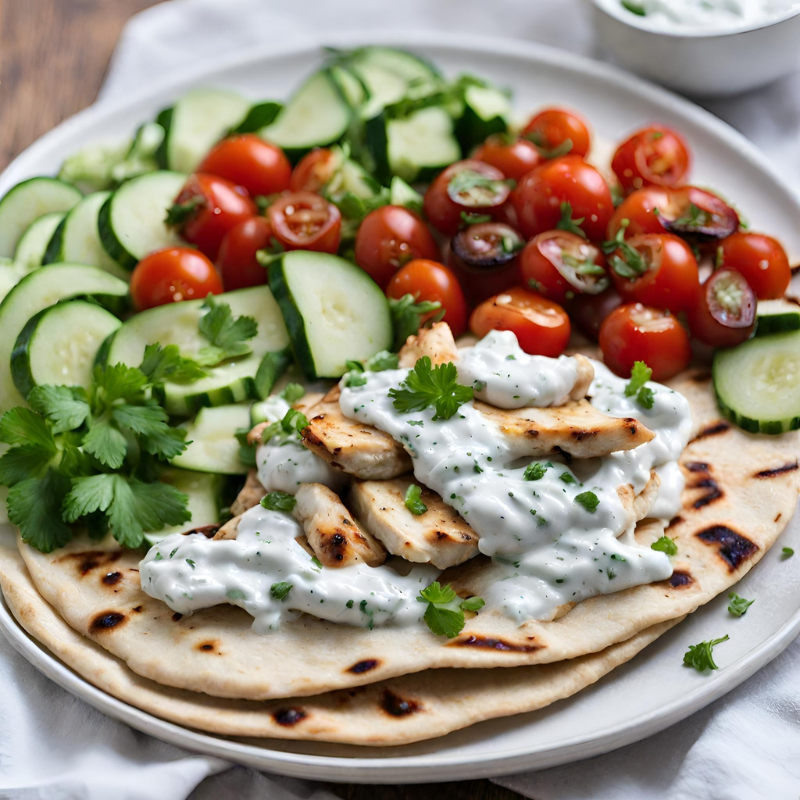 Assemble wraps with chicken, cucumber, cherry tomatoes, and a drizzle of tzatziki sauce.