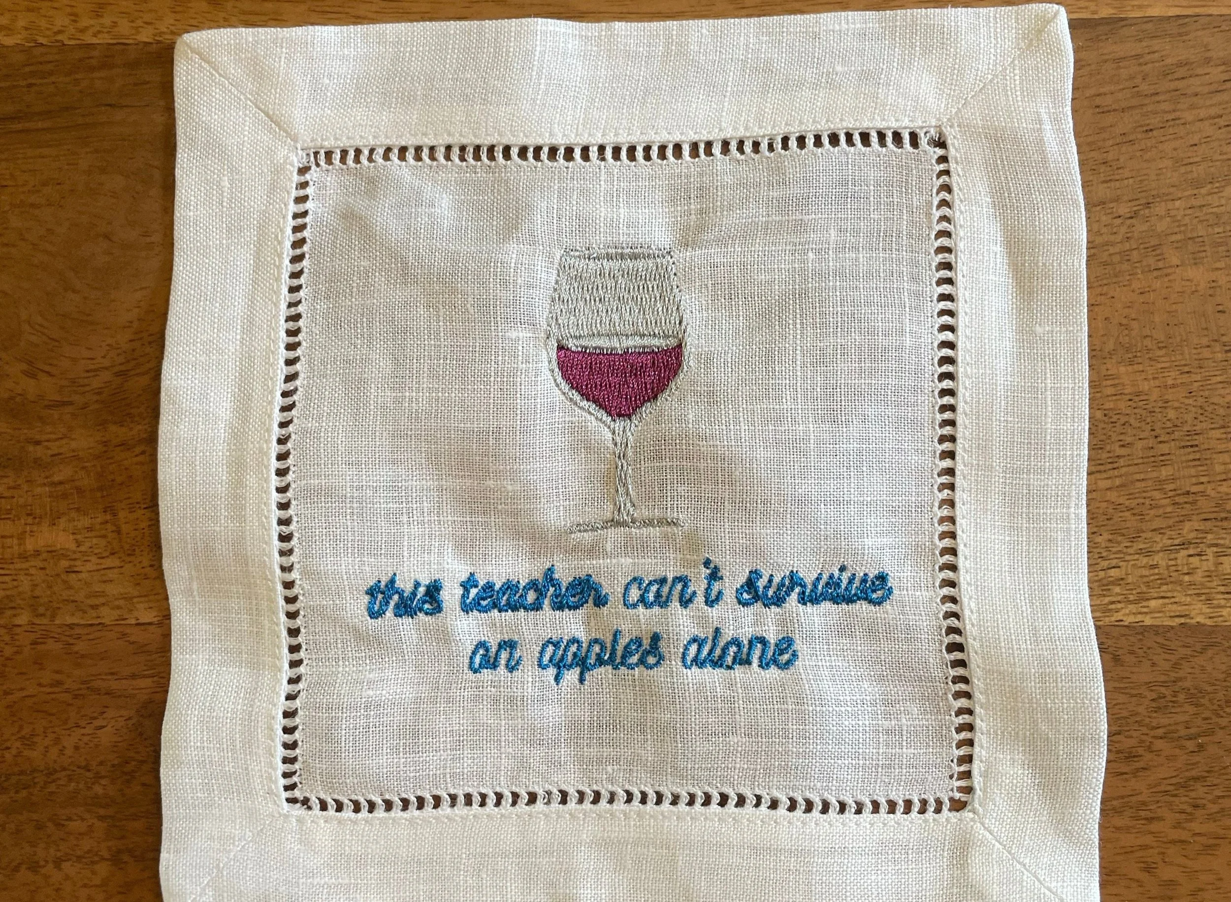 Breast Cancer Support Gift | Worst Club Best Members | Uplifting Breast Cancer Encouragement | Linen Cocktail Napkins | Breast Cancer Gift $35.00 Funny Embroidered Cocktail Napkins (Golf Cocktail Napkins) $36.00 Windy City Linen Cocktail Napkins, Chicago Cocktail Napkins, Funny Embroidered Cocktail Napkins, Drink Coaster, Custom Wedding Gift $32.00 Funny Embroidered Cocktail Napkins, Taco Tuesday Napkins, Funny Bar Cart Napkins, Embroidered Linen Napkins, Custom Hostess Gift $35.00 Funny Custom Mother's Day Gift, Funny Linen Cocktail Napkins, Hostess Gifts for Moms, Personalized Tea Mat, Mug Rug Coasters $34.00 Funny Teacher Gift, Funny Kindergarten Teacher Gift, Funny Embroidered Cocktail Napkins (Boozy Cocktail Napkins for Teachers), Teacher Gift $36.00 Custom Linen Cocktail Napkins $38.00 Funny Embroidered Cocktail Napkins (Après Ski Cocktail Napkins) $36.00 Custom Linen Cocktail Napkins, Chicago Cocktail Napkins, Funny Embroidered Cocktail Napkins, Drink Coaster, Custom Wedding Gift $32.00 Tipsy Dogs Cocktail Napkins - Drinking Dogs - Custom Linen Cocktail Napkins - Custom Embroidered Linen Cocktail Napkins (Set of 4) $42.00 Funny Embroidered Cocktail Napkins (Boozy Cocktail Napkins) $36.00